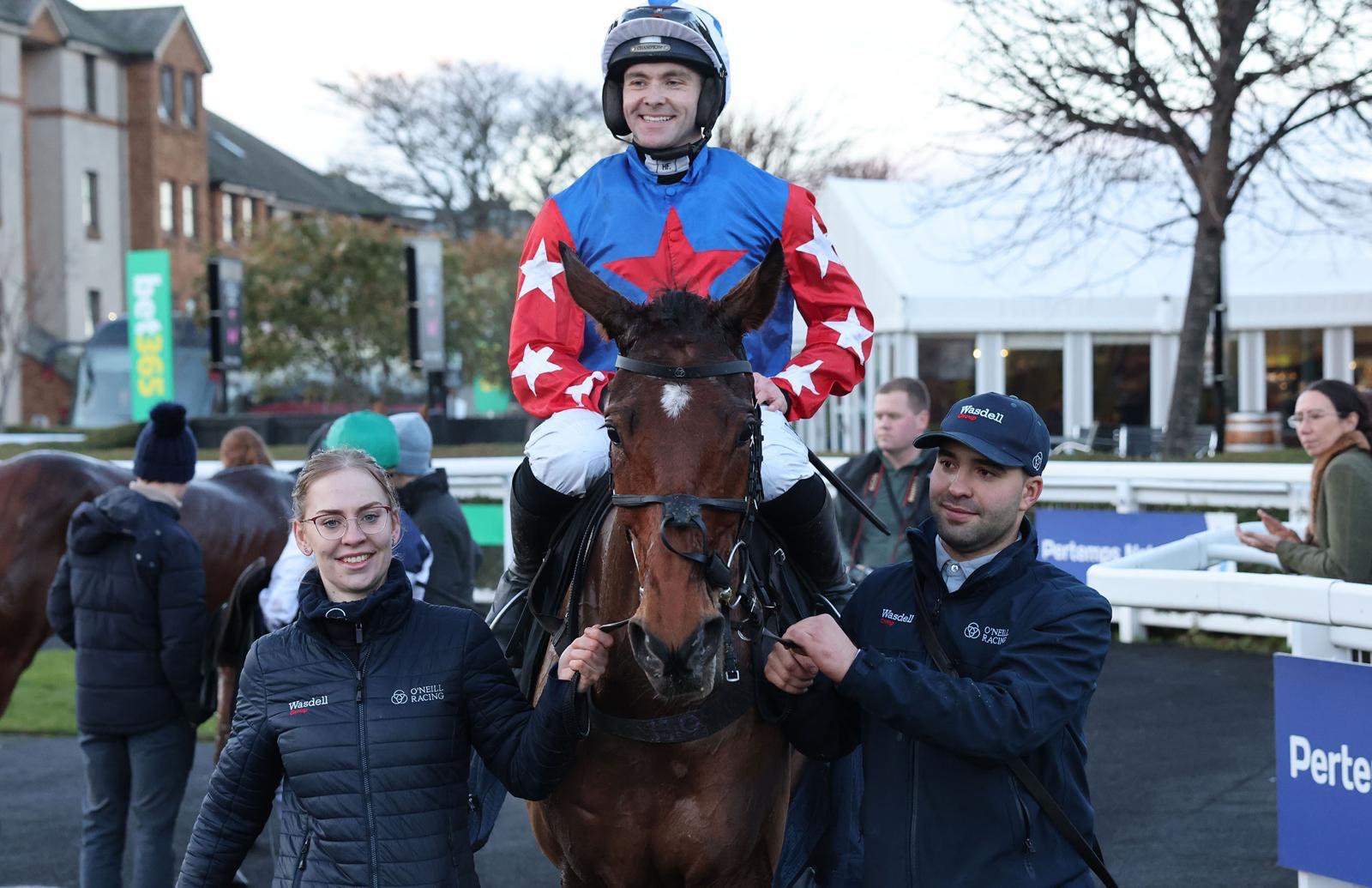Dearkeithandkaty kept on well to get up to win at Musselburgh this afternoon in the hands of Jonjo O’Neill Jr… a victory that means Jonjo has now ridden a winner at every National Hunt racecourse in the UK!