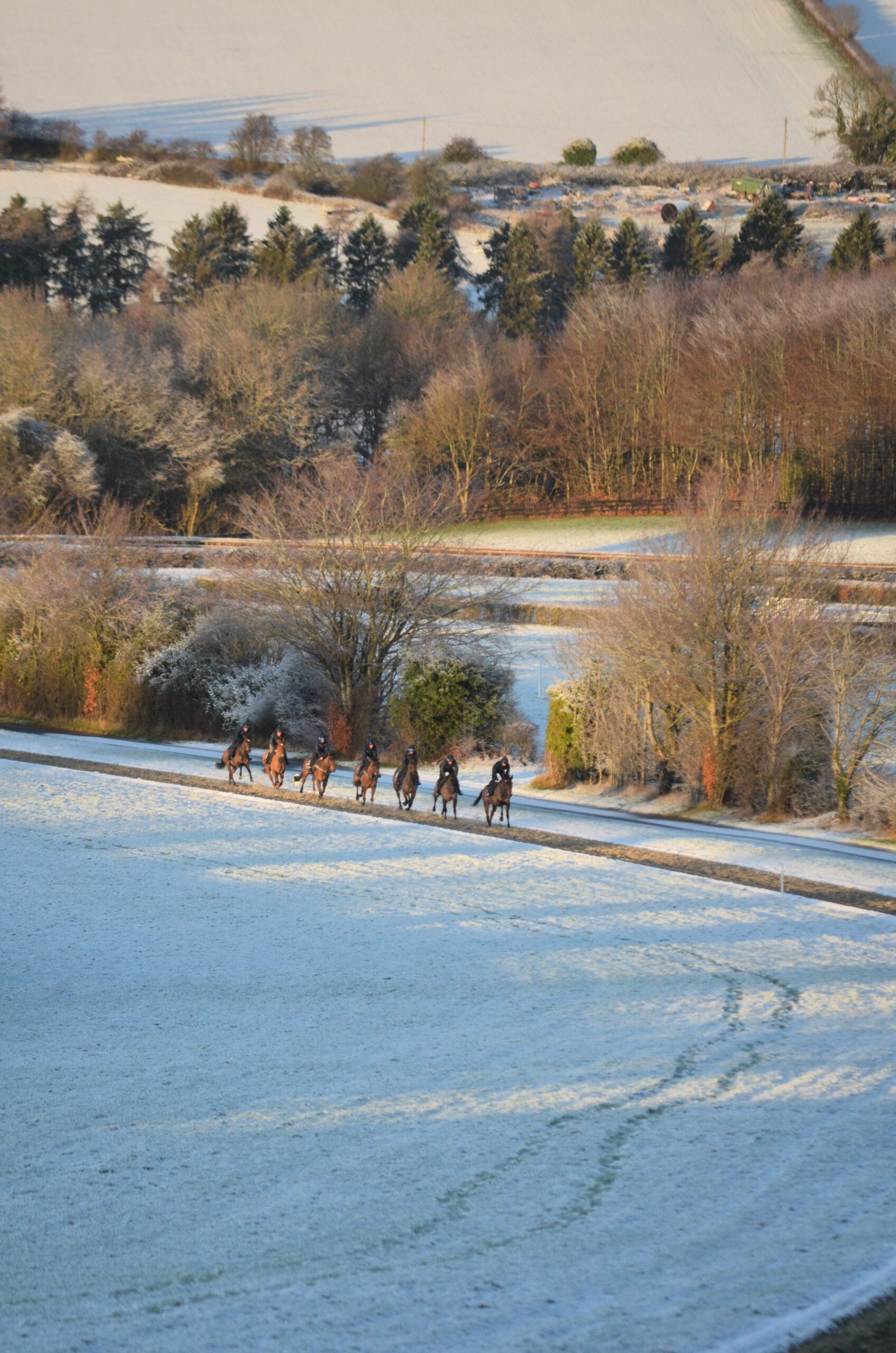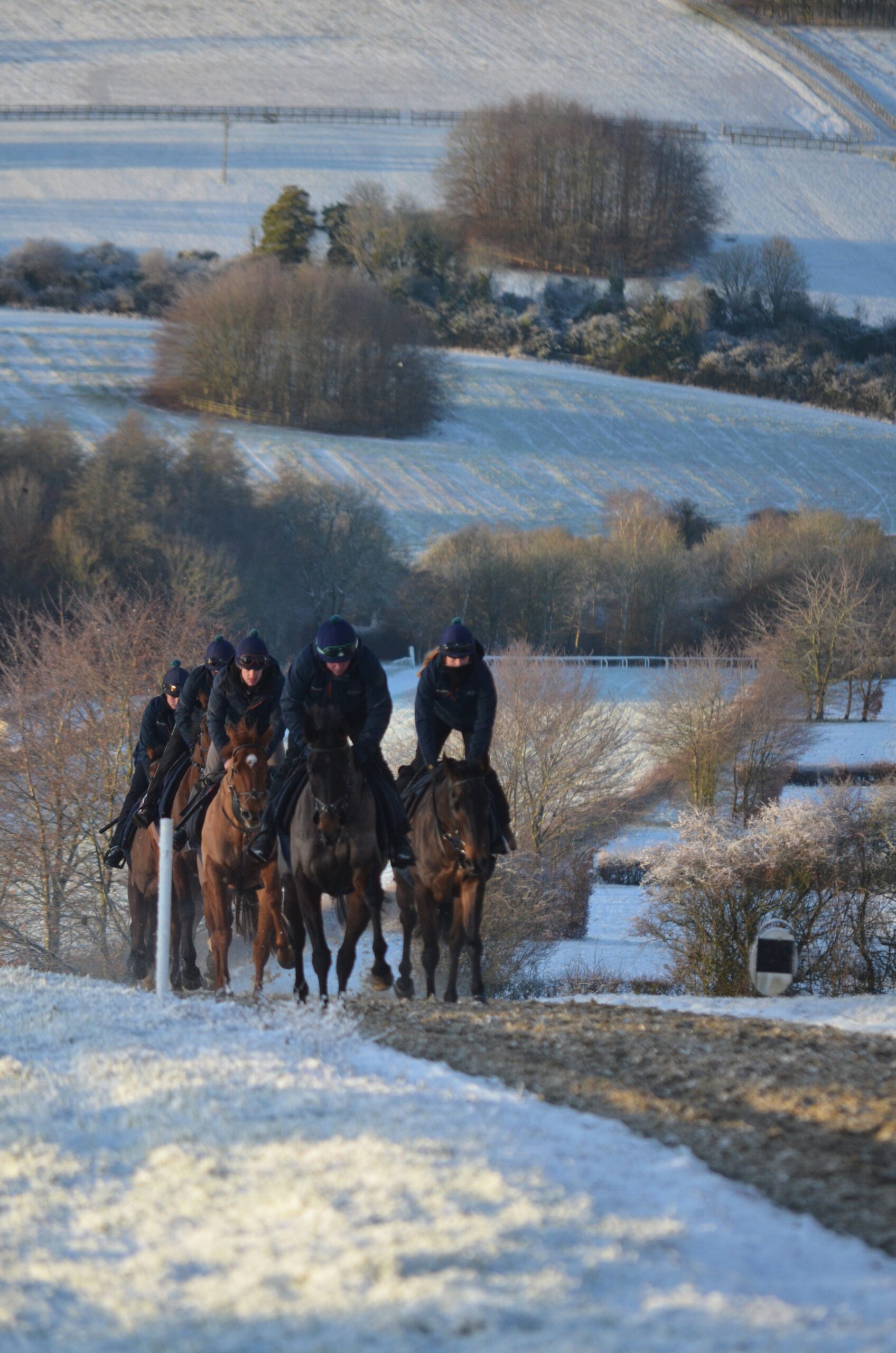 The team work tirelessly to make the mornings run smoothly, from getting the gallops cleared to gritting the yard to avoid any slips!
