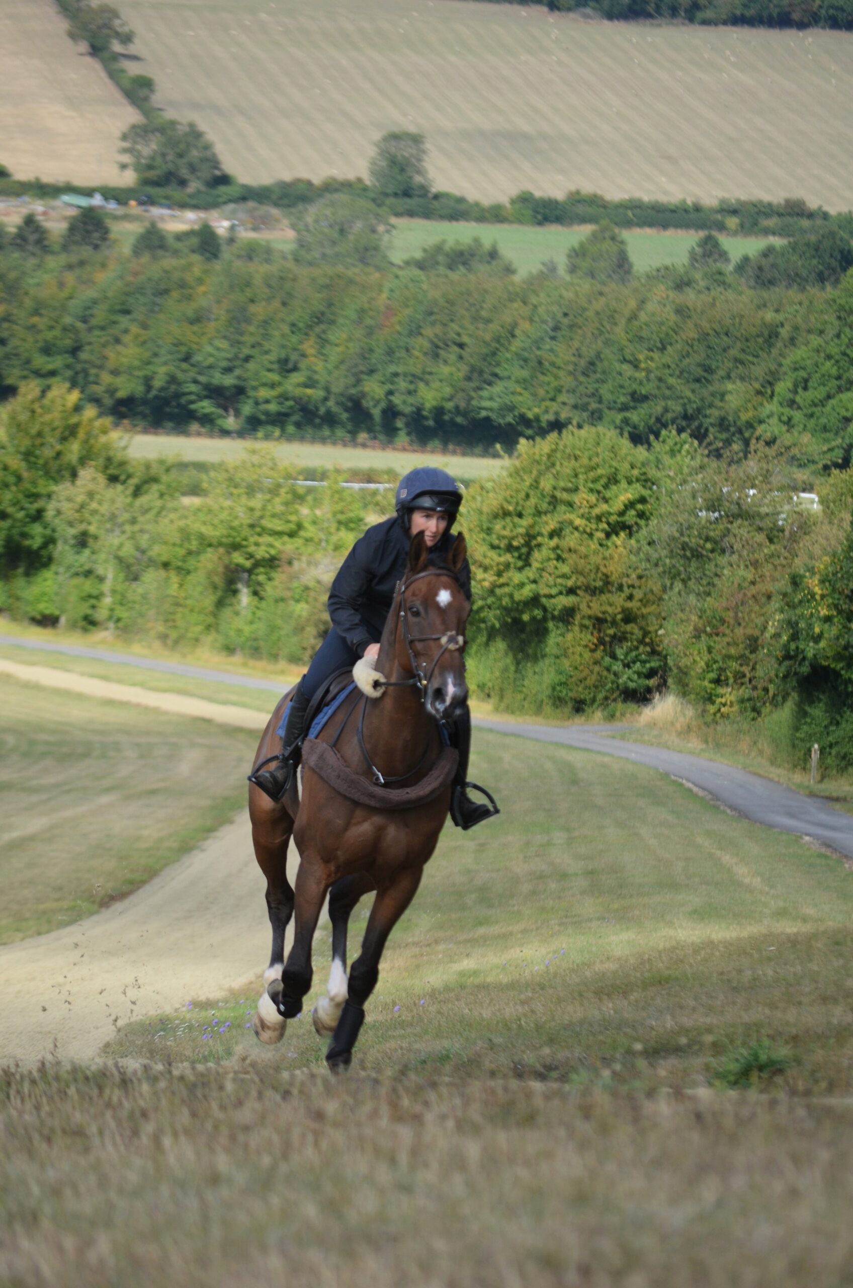 Laura and London 52 on the gallops here at Jackdaws Castle